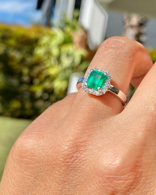 Anillo Emerald en Oro Blanco 18k con Esmeralda y Diamantes