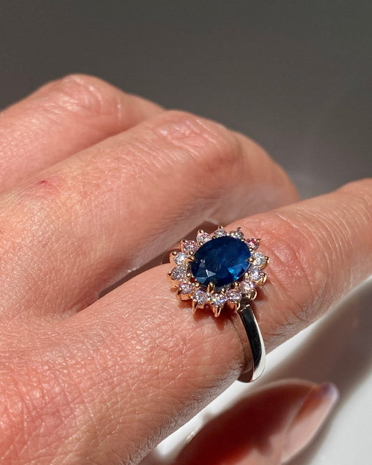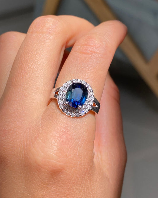 Anillo de Zafiro en Oro Blanco 18k con Diamantes