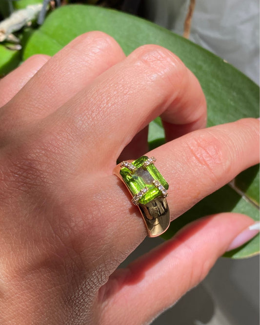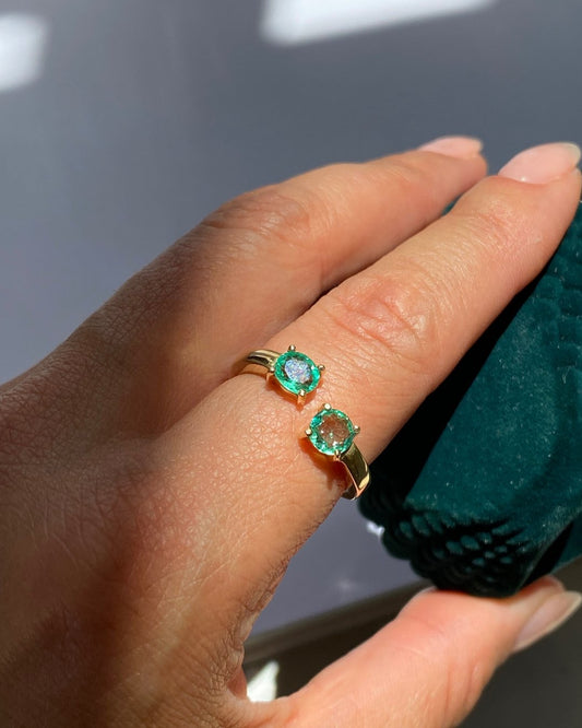 Anillo Semi Abierto con Esmeraldas Ovaladas