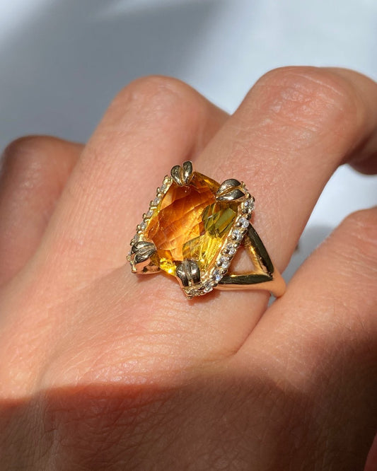 Anillo Sun en Oro Amarillo 18k con Citrino y Diamantes